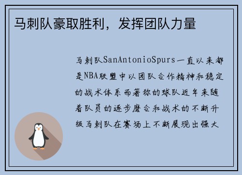 雷霆队近年来在NBA赛场上展现了不容小觑的实力,凭借着卓越的团队合作,他们逐渐成为联盟中一支不容忽视的强队。尽管在实力对比上有些差距,但通过默契配合和集体努力,雷霆队的每一场比赛都充满了悬念和看点。在本篇文章中,将从四个方面详细阐述雷霆队的优势,分析他们是如何通过团队合作获得胜利的。这四个方面分别是...